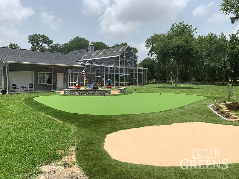 Unlike our signature "Short Game" Greens, Tour Greens outdoor putting greens are designed for putting and chipping practice, simulating the look, feel and performance of real bent grass greens. Outdoor Putting Green systems can be designed with customized green speeds, breaks and undulations, as well as different cuts of fringe and rough to create the ideal putting green for your practice needs.